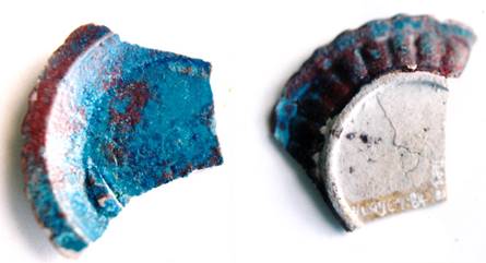 貴重な蒲原城址出土の「染付玉取獅子紋稜花大皿」と「交趾釉の小皿(緑釉菊花小皿)」